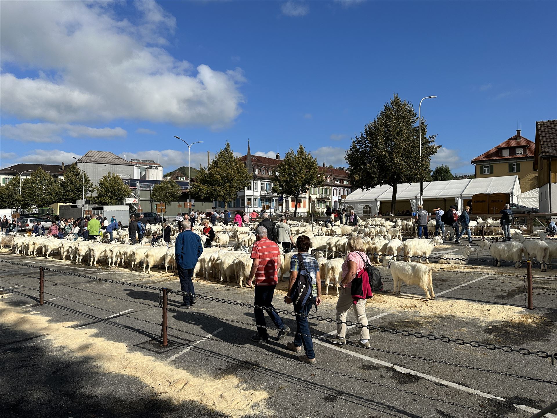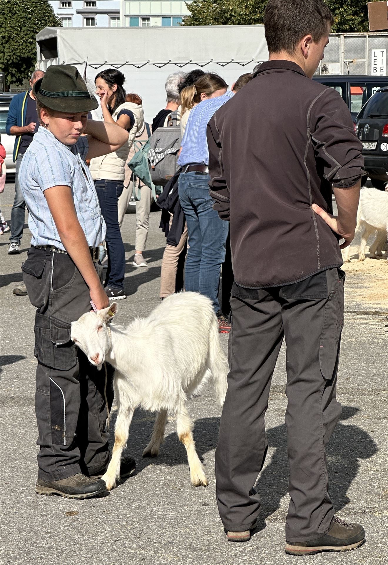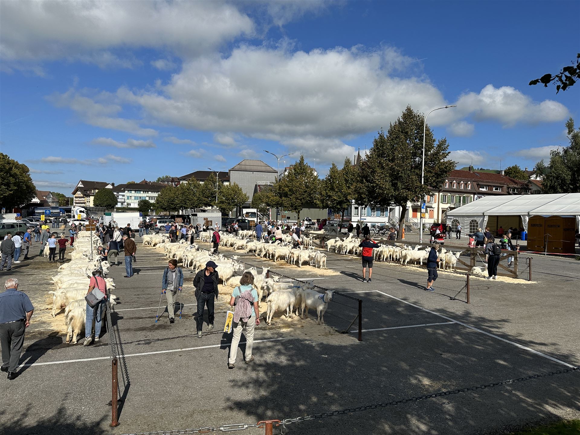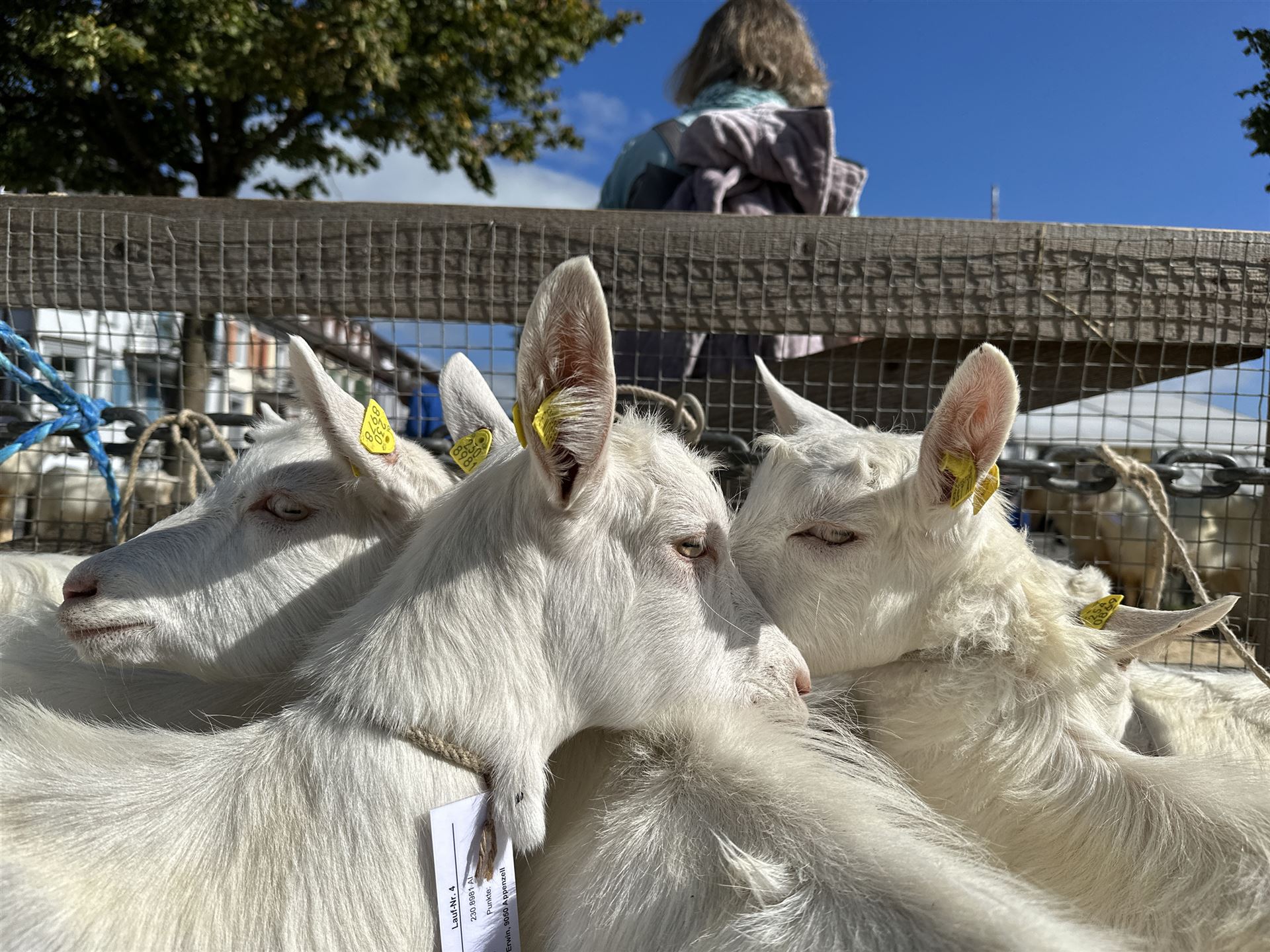 Zwischen den Ziegenreihen tummelte sich auch viele Besucherinnen und Besucher von nah und fern. Begeistert wurden die geduldig wartenden Ziegen geknuddelt und mit den Smartphones geknipst.