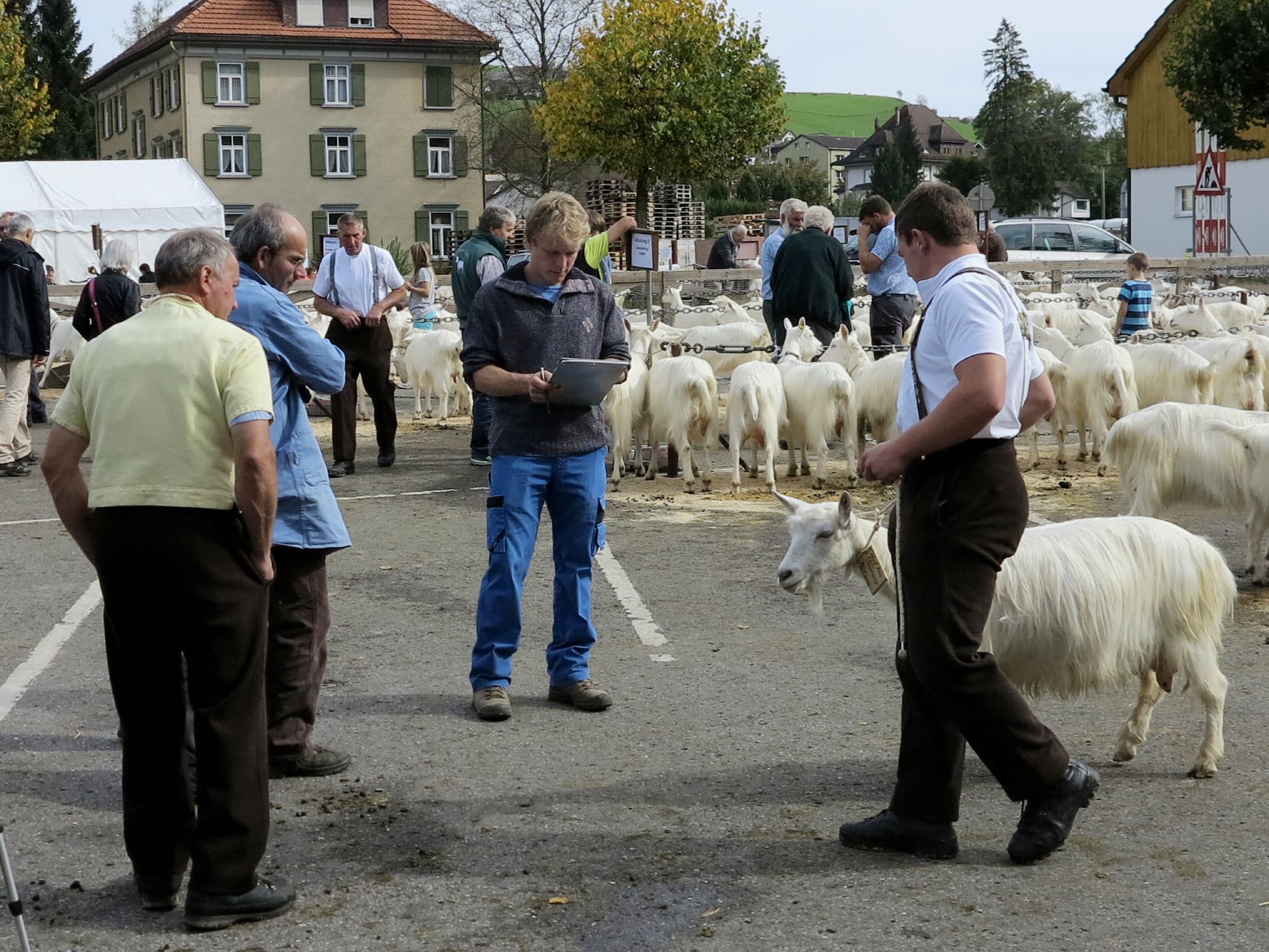 An der diesjährigen Ziegenschau vom 8. Oktober gab es auf dem Brauereiplatz in Appenzell wiederum eine stattliche Schar schöner Appenzellerziegen zu bewundern. Mit gut 250 Ziegen und Böcken wurde zwar die Zahl der Vorjahre nicht erreicht. Für die Experten gab es denoch viel tun, bis alle Tiere fachgerecht punktiert waren. Derweil tummelten sich zwischen den Ziegenreihen auch viele Besucherinnen und Besucher von nah und fern. Begeistert wurden die geduldig wartenden Ziegen geknuddelt und mit den allgegenwärtigen Smartphones geknipst.