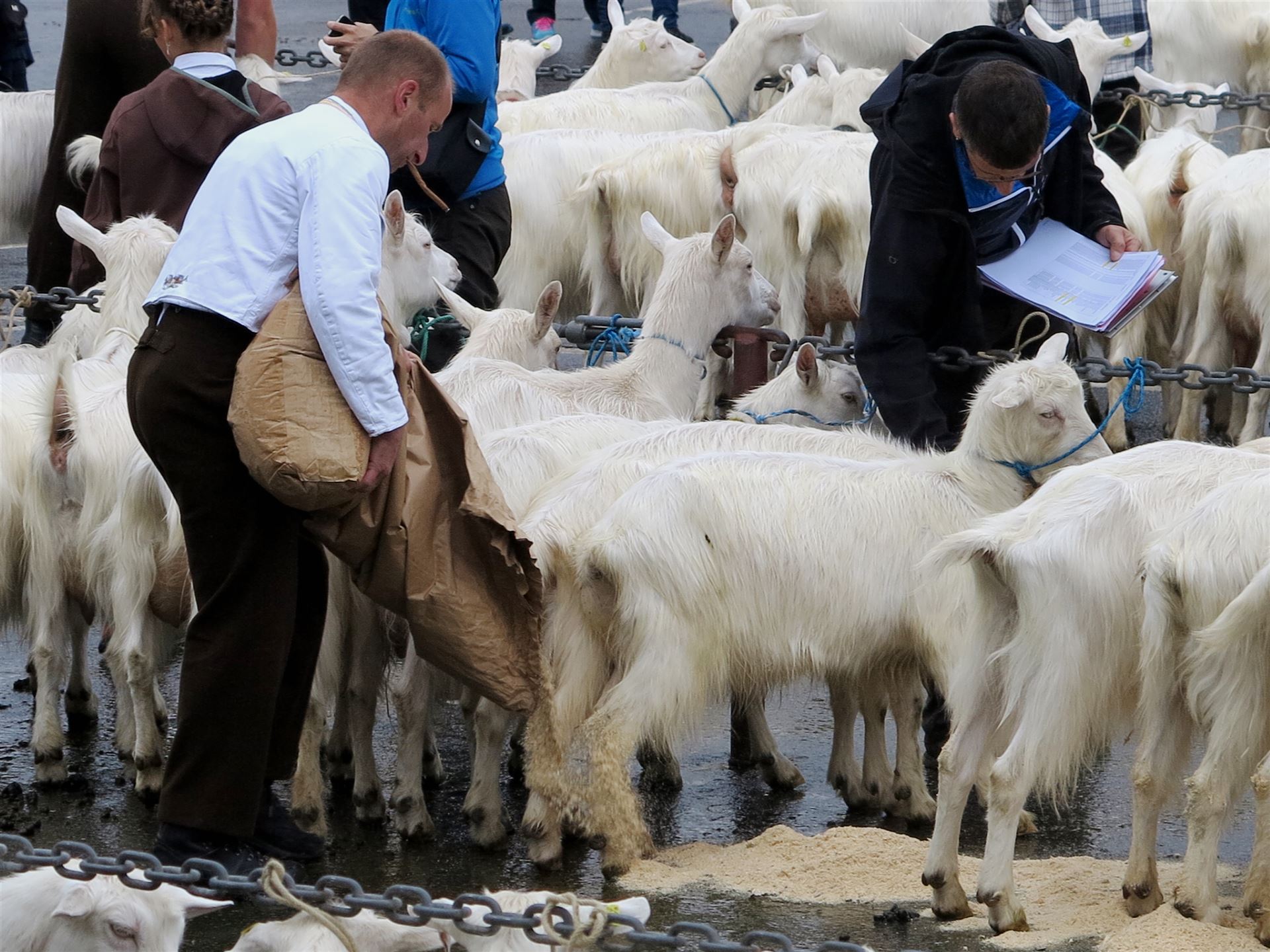 An der diesjährigen Ziegenschau in Appenzell waren zeitweise mehr Besucher wie Ziegen anzutreffen. Während wohl die eine oder andere Ziege bei der Nässe lieber im Stall blieb, waren die Touristen froh, dem engen Hotelzimmer entfliehen zu können und einen traditionellen Anlass zu besuchen. Der Besuch lohnte sich allemal. Es waren sehr schöne Tiere zu sehen, von den wenige Monate alten Gitzis bis zu den Altziegen. Die älteste Ziege Didi kann auf stolze 13 1/2 Jahre zurückblicken.