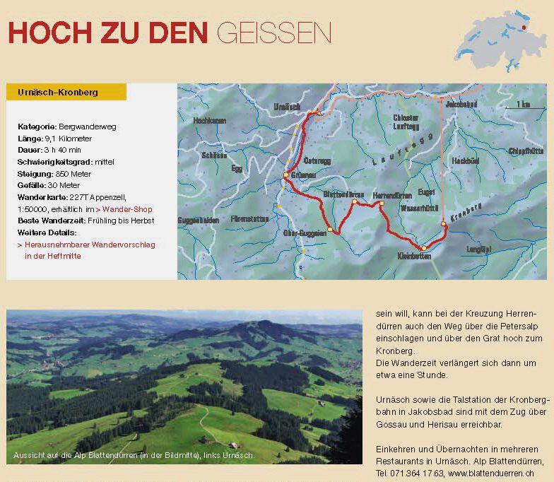 Die Zeitschrift wandern.ch portraitiert in ihrer Juni Ausgabe 03/2013 unter dem Titel «Die Rückkehr der Sympathieträgerinnen» die Appenzeller Ziege und ihre Entwicklung. Sie gehöre zum Appenzellerland «wie die Siedwurst und der Alpstein». Der Artikel wird abgerundet mit einem Wandervorschlag zu den Geissen. Die Redaktion hat uns den gesamten Beitrag freundlicherweise zur Verfügung gestellt. Sie können ihn durch das Anklicken des nebenstehenden Bildes herunterladen.