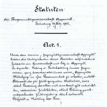 Mit der organisierten Zucht wurde in Innerrhoden 1902 und in Ausserrhoden 1914 begonnen. Der umfangreiche Export von Ziegen nach Deutschland hatte die Rasse in ihrer Qualität geschwächt. Die landwirtschaftliche Kommission empfahl deshalb die Gründung von Zuchtgenossenschaften, um den Bestand zu sichern und die Zucht gezielt zu fördern.