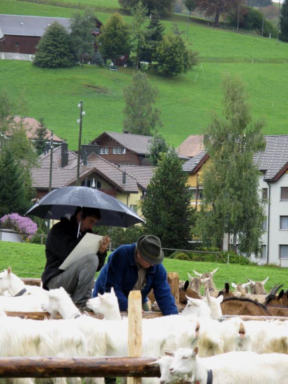 Die diesjährige Ziegenschau in Urnäsch hatte mit ausserordentlich schlechtem Wetter zu kämpfen. Ziegen und Züchter standen im Dauerregen. Trotz der grossen Nässe wurden die ebenso geduldigen wie prächtigen Tiere einer genauen Prüfung unterzogen.