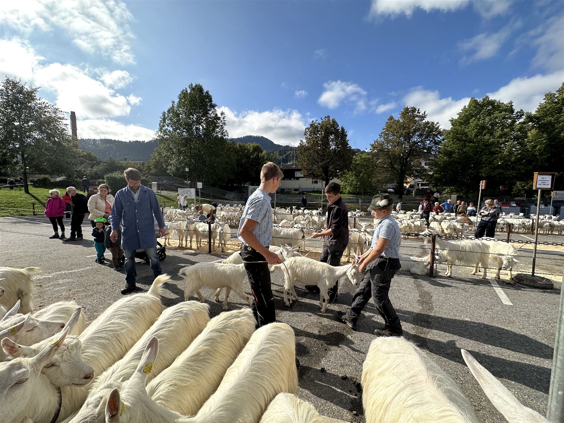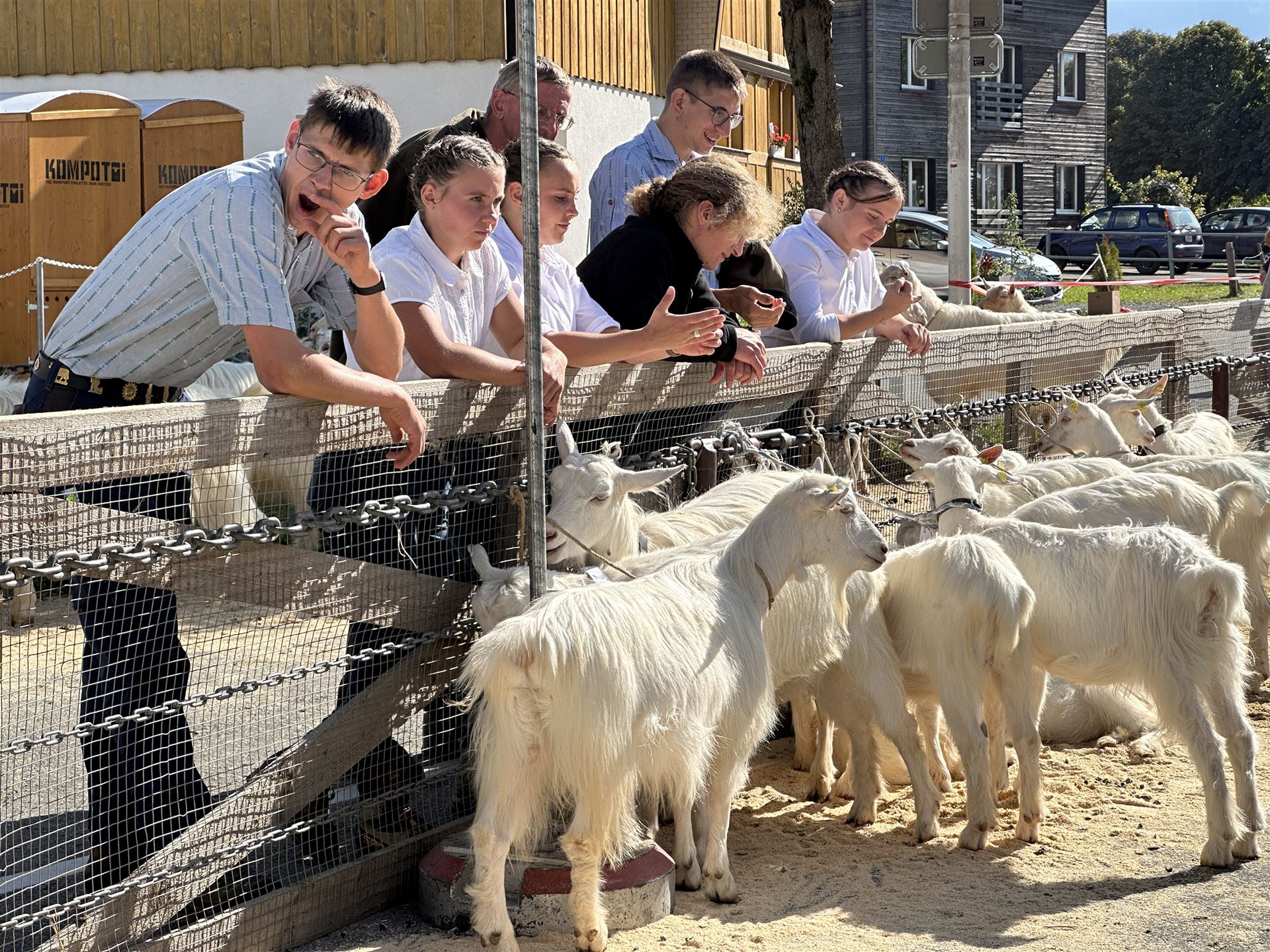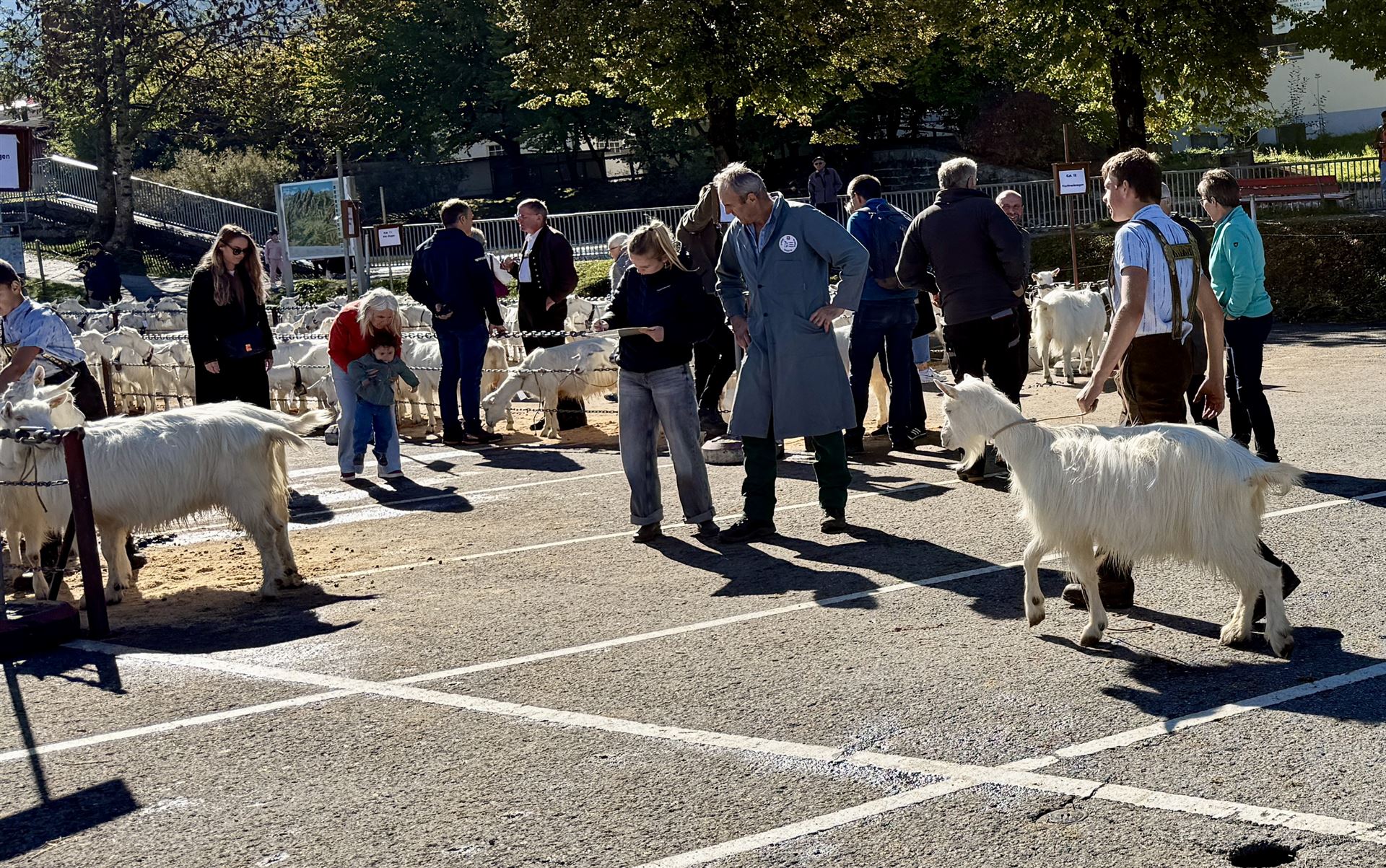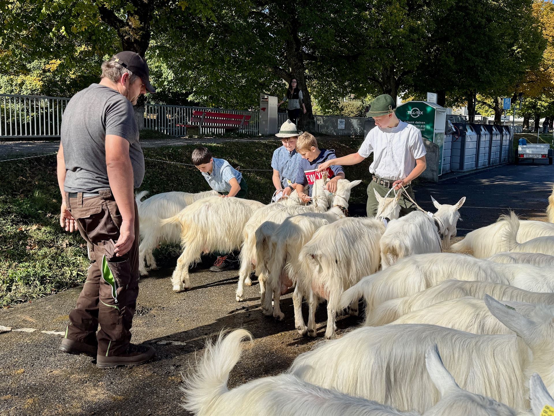 Zwischen den Ziegenreihen tummelte sich auch viele Besucherinnen und Besucher von nah und fern. Begeistert wurden die geduldig wartenden Ziegen geknuddelt und mit den Smartphones geknipst.