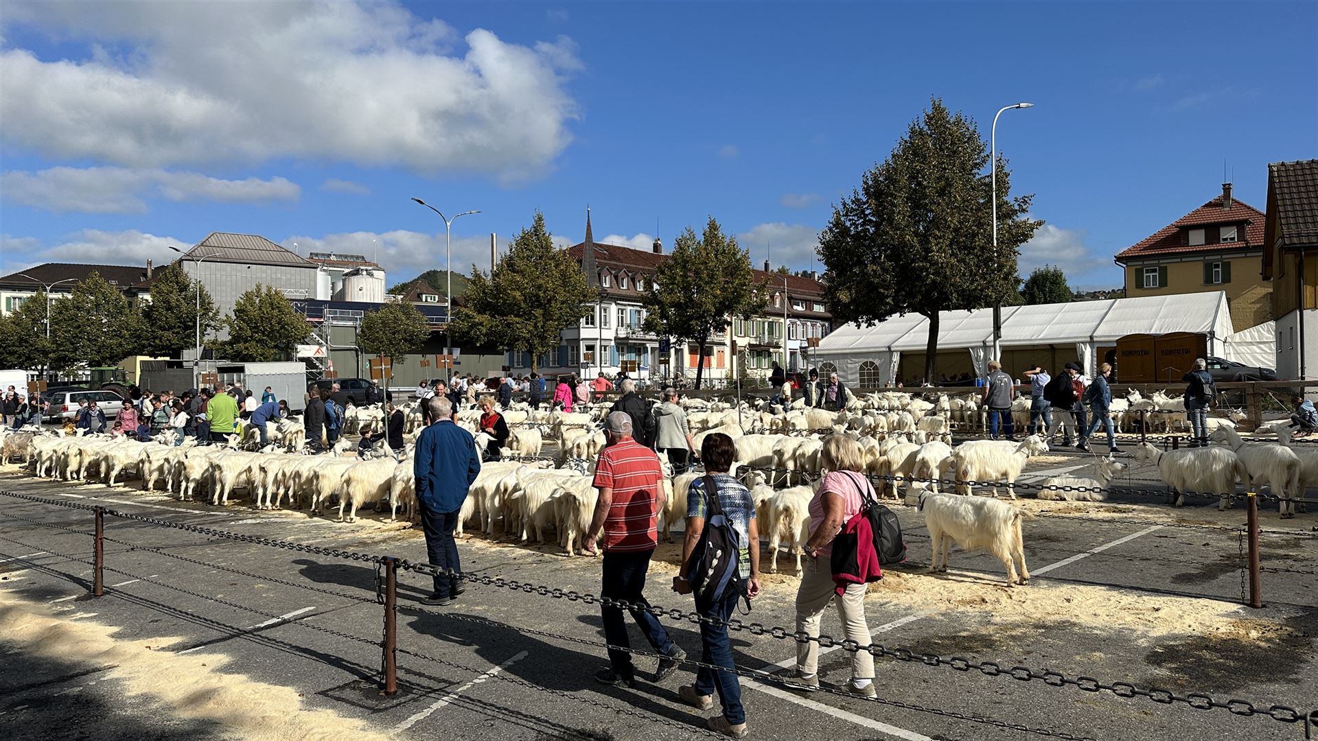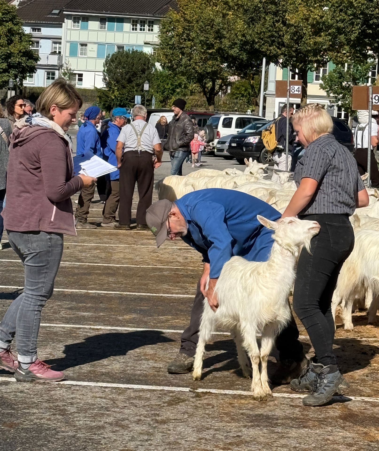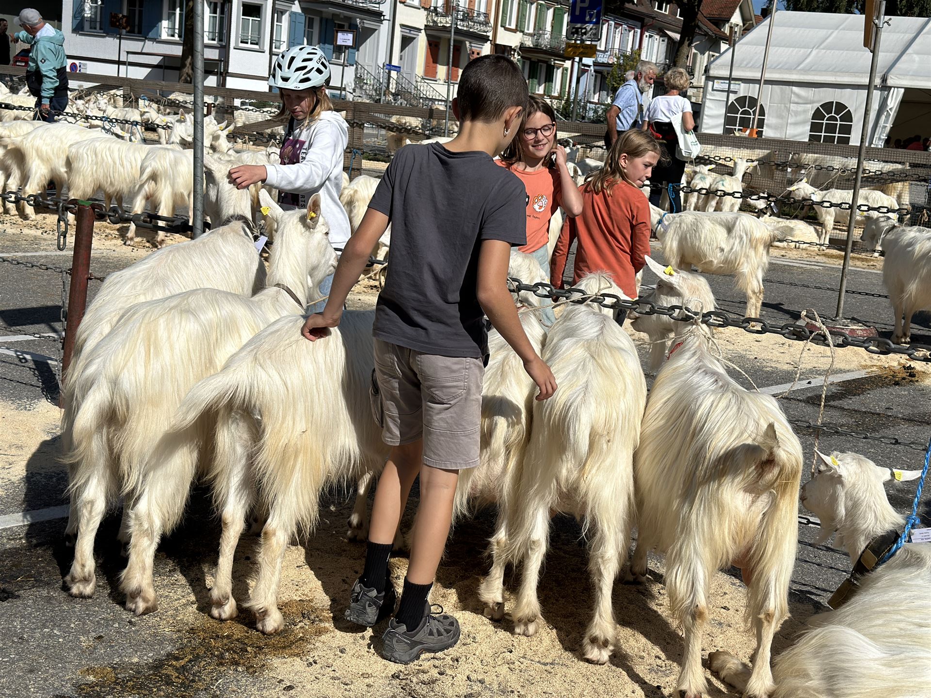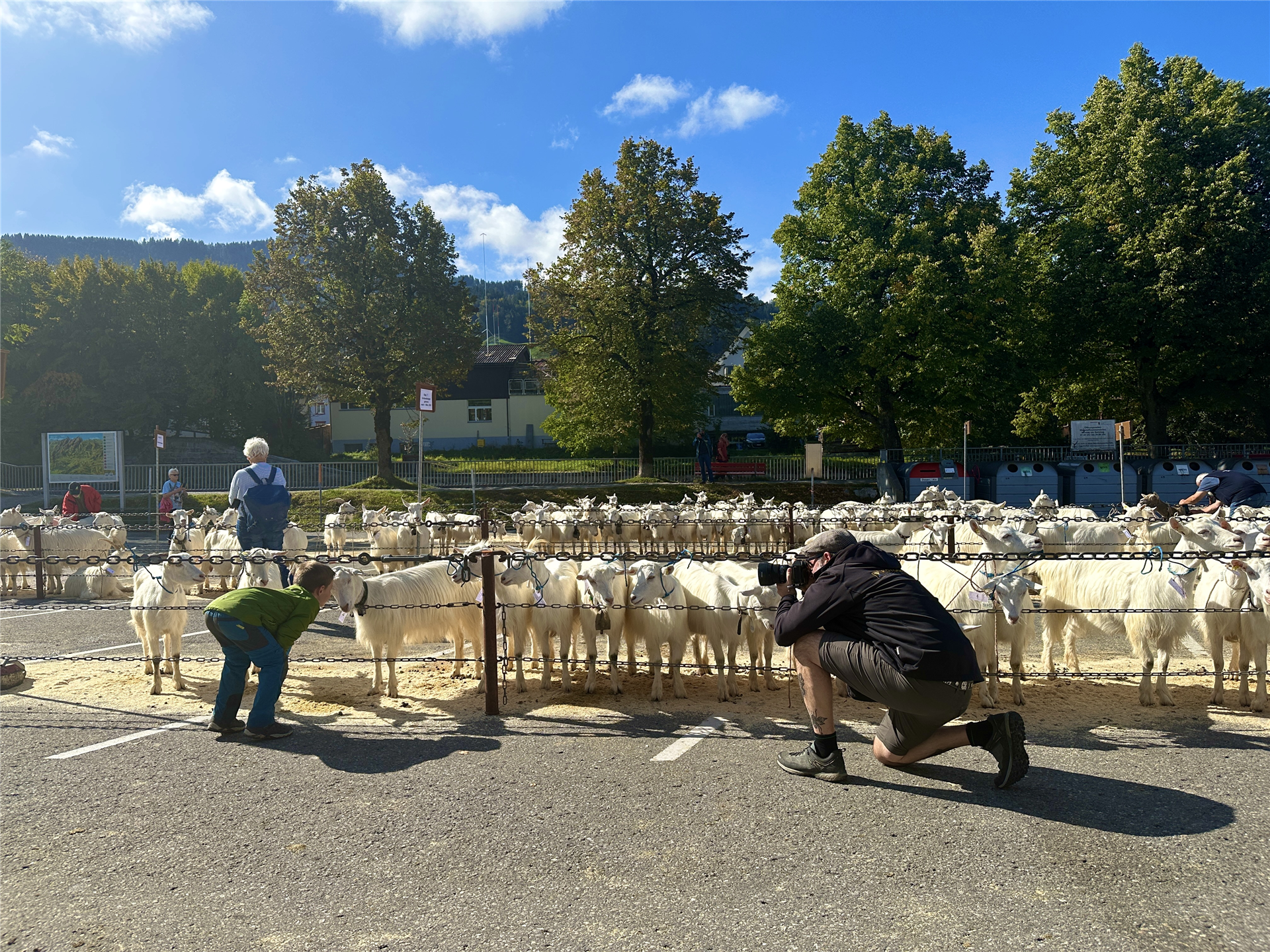 Zwischen den Ziegenreihen tummelte sich auch viele Besucherinnen und Besucher von nah und fern. Begeistert wurden die geduldig wartenden Ziegen geknuddelt und mit den Smartphones geknipst.
