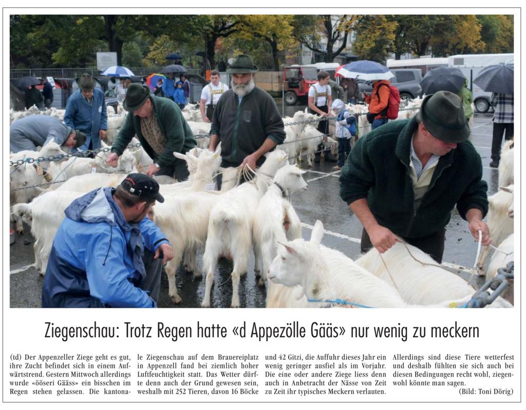 Der Appenzeller Volksfreund widmete auch in diesem Jahr der traditionellen Ziegenschau auf dem Brauereiplatz einen Bericht. Durch ein Anklicken des Zeitungsausschnittes können Sie den Beitrag bequem nachlesen.
