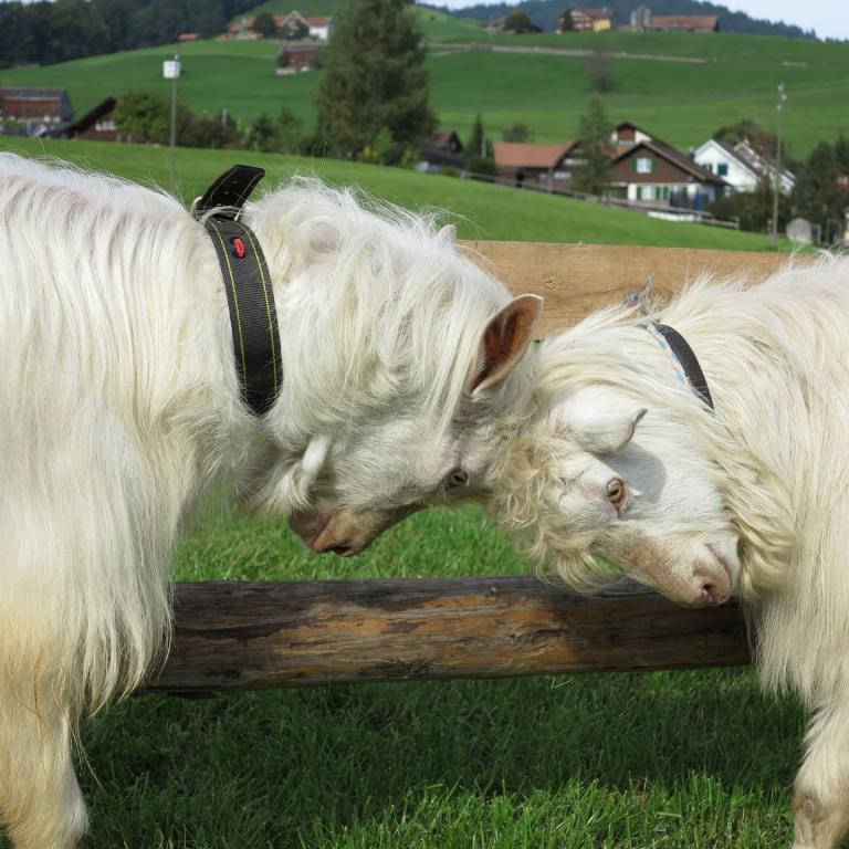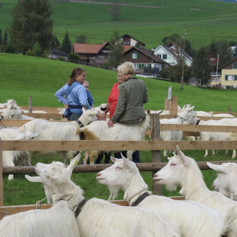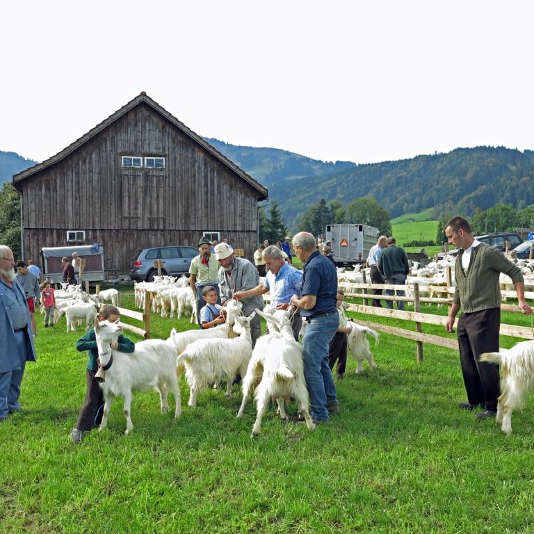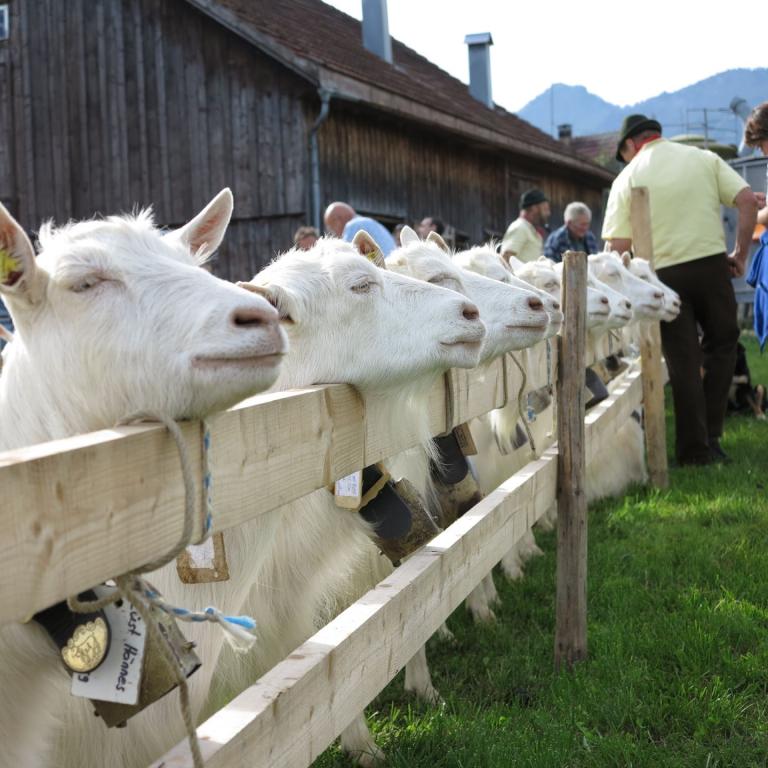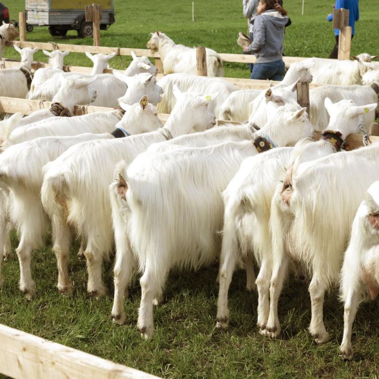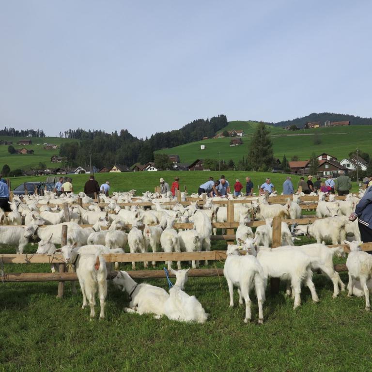Gut 200 Ziegen und Böcke wurden am 28. September an der Ziegenschau in Urnäsch präsentiert. Petrus hatte dafür Ziegenwetter eingeplant: trocken und angenehme Temperaturen, weder zu warm noch zu kalt. Die Bewertung lief konzentriert und zügig ab. Einzig die vorbeiziehenden Ababfahrten im traditioneller Formation zogen immer wieder die interessierten Blicke von Züchtern und Zuschauern auf sich. Sehen Sie sich die Bilder auf dem Leuchttisch an.