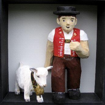 Sibylle Bichsel schnitzt aus Lindenholz mit geschickter Hand und viel Liebe zum Detail verschiedenste Figuren aus dem Appenzeller Brauchtum und bemalt sie. Natürlich dürfen auch die Appenzeller Ziegen nicht fehlen, ob als Einzelfigur oder als Teil eines imposanten Alpaufzugs.